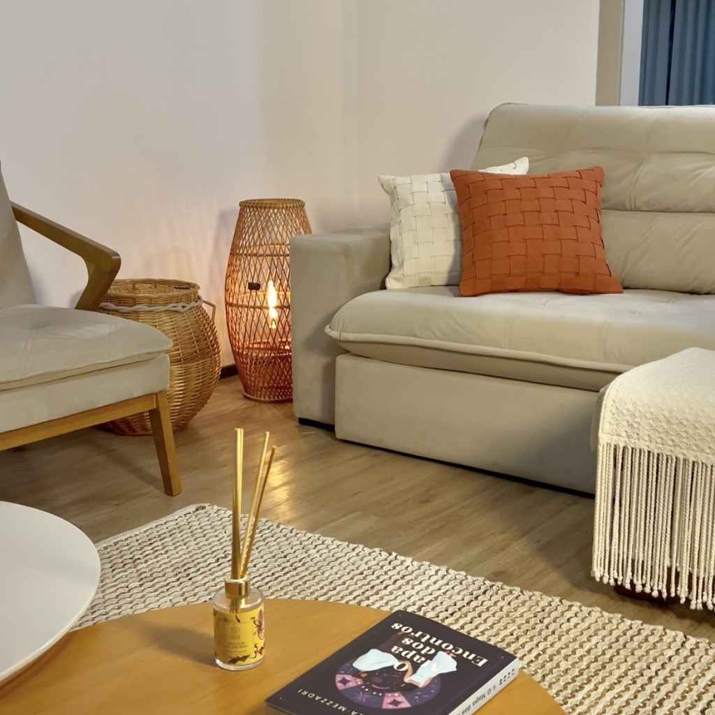 - Adicione camadas de textura: Linho, algodão, vime, terracota. É isso que impede o ambiente de ficar sem graça.