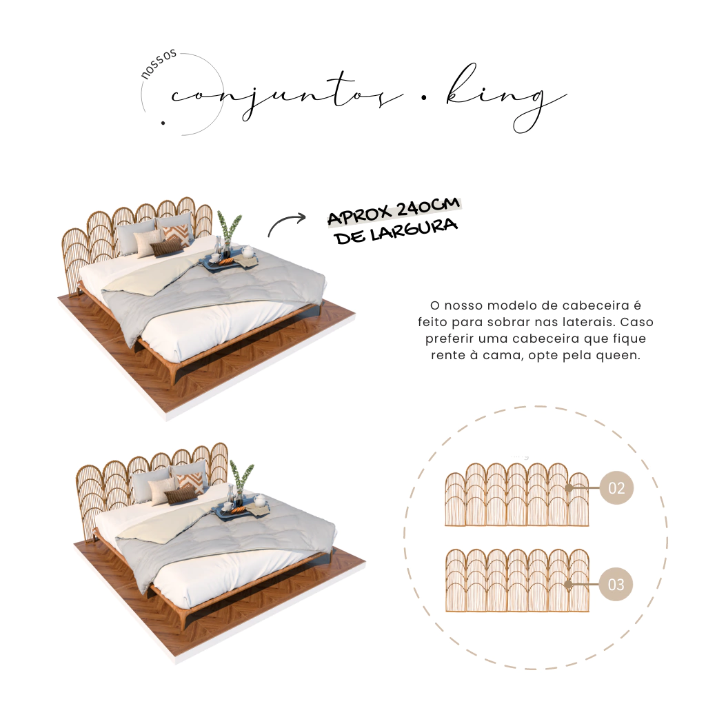 Seu formato inovador permite múltiplas combinações e usos, podendo ser utilizada não só como cabeceira, mas também em outros ambientes, como nos cantinhos da sala de estar ou sala de jantar — tudo depende da sua criatividade!