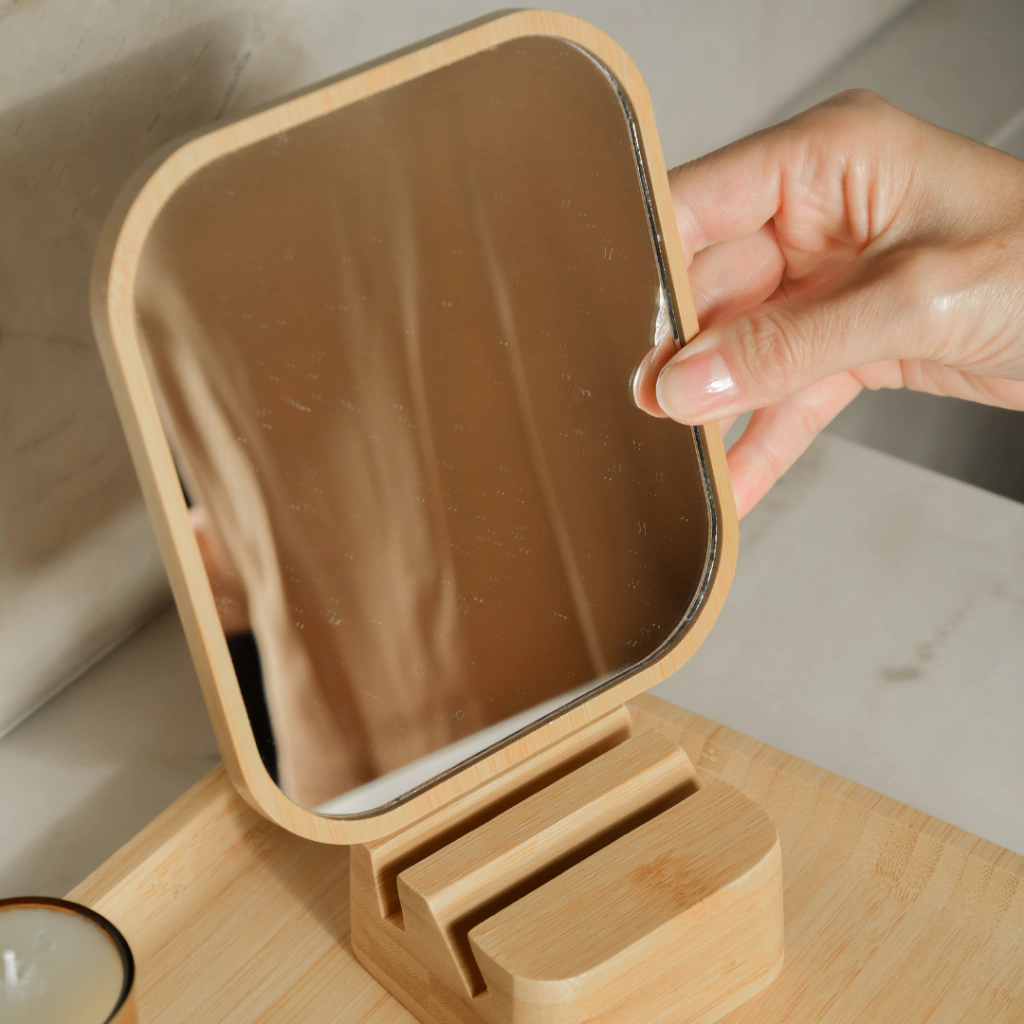 O Espelho de Mesa Prana de Bambu é mais do que um acessório, é um ritual de reconexão. Cada manhã diante dele é um convite para olhar-se com gentileza, reconhecer sua energia vital e honrar sua essência. Com design leve e base em bambu sustentável, ele transforma sua rotina em um momento de autocuidado consciente, unindo estética natural e propósito.