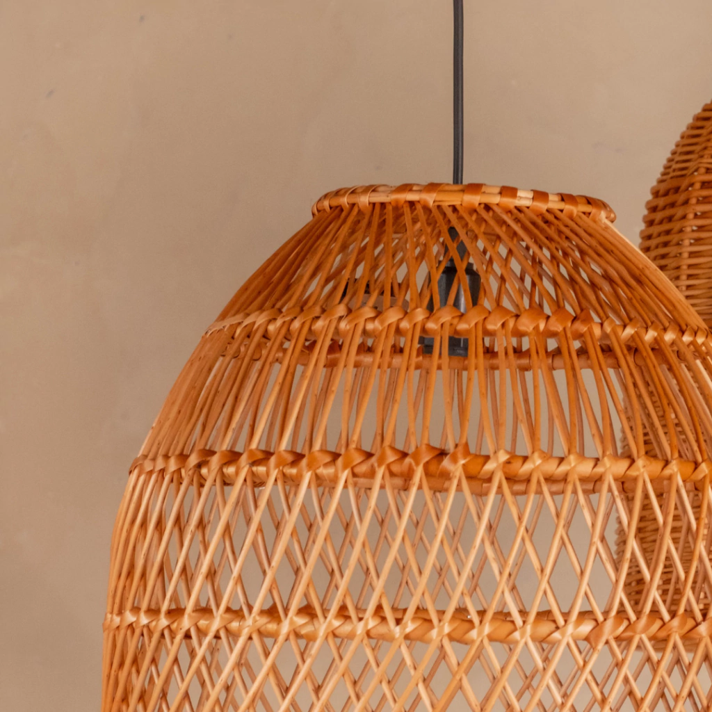 O trançado xadrez de vime cria uma atmosfera acolhedora, perfeita para qualquer lugar dentro de casa, permitindo-a ser combinada com outras luminárias principalmente para espaços mais amplos que exigem uma iluminação mais imponente e em destaque.